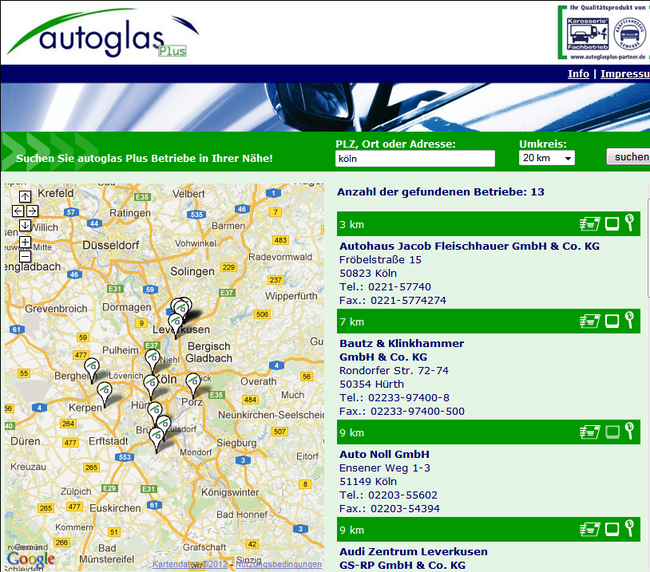 Alle autoglas Plus Betriebe werden in der Internet-Datenbank www.autoglasplus.de erfasst und sind hierdurch für Autofahrer und Versicherungen schnell zu finden.