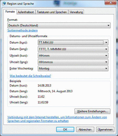 Bei einigen vorinstallierten Rechnern mit Windows Vista bzw. Windows 7 besteht ein Fehler in der Konfiguration der Datumsanzeige. Um diesen zu beheben gehen Sie bitte wie folgt vor: