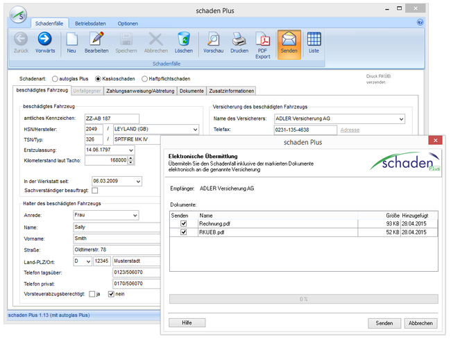 - Vorgang an Versicherungen absenden und fertig!